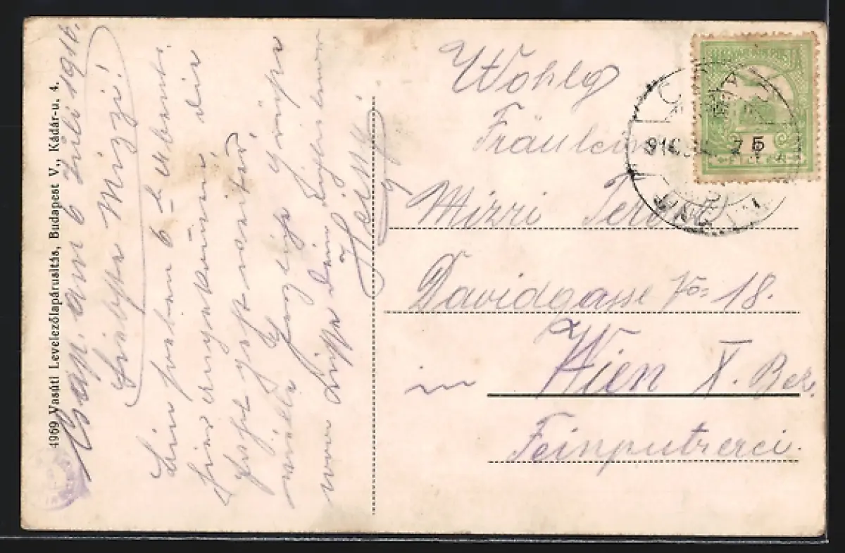 gelaufen 1910, Eckknick re. oben, Bugspur re. oben, guter Zustand