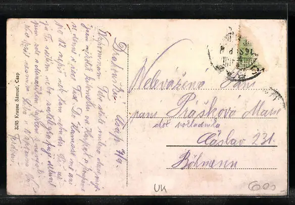 alte Ansichtskarte, gelaufen, Briefmarke entfernt, guter Zustand