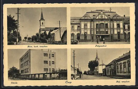 AK Csap, Röm. kath. templom, Palyaudvar, Ref. templom