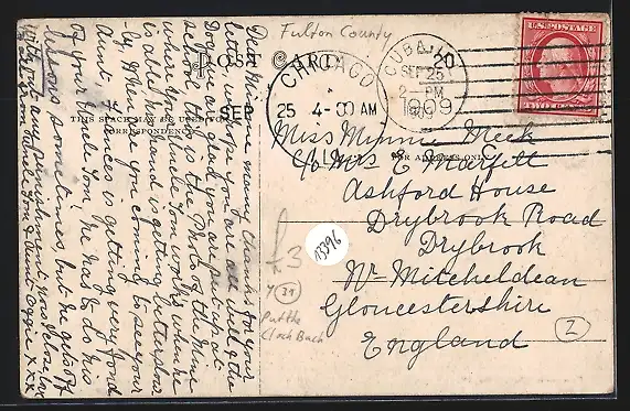 alte Ansichtskarte, gelaufen 1909, Eckknicke li. und oben re., Bugspur und kleiner Einriss oben li., guter Zustand