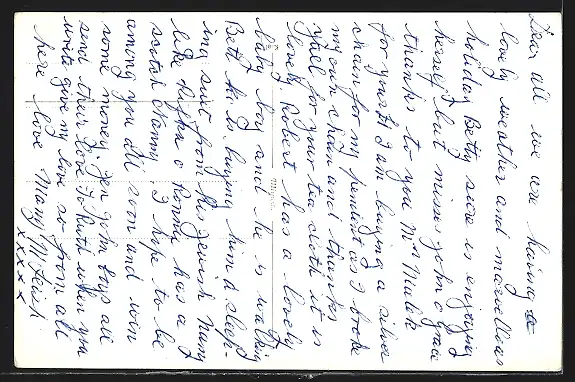 Personenbezogene Daten auf der Rückseite der Karte wurden durch blauen Textmarker unkenntlich gemacht. Die blauen Stellen sind auf die Vorderseite durchgeweicht und wirken sich negativ auf das Postkartenfoto aus