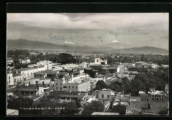 AK Cuernavaca, Teilansicht mit Vulkanen aus der Vogelschau