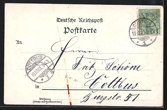 alte Ansichtskarte, gelaufen 1901, rückseitig Klebe- und Papierreste, guter Zustand