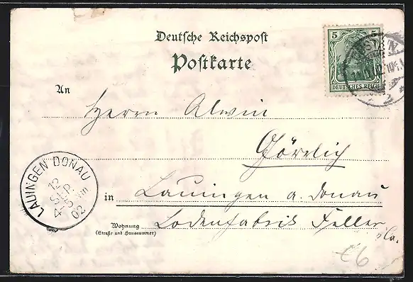 alte Ansichtskarte, gelaufen 1902, Eckknick li. unten, minimale Einrisse re. oben, guter Zustand