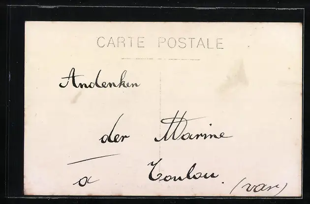 Personenbezogene Daten auf der Rückseite der Karte wurden durch blauen Textmarker unkenntlich gemacht. Die blauen Stellen sind auf die Vorderseite durchgeweicht und wirken sich negativ auf das Postkartenfoto aus