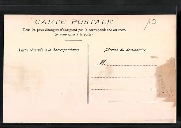 Personenbezogene Daten auf der Rückseite der Karte wurden durch blauen Textmarker unkenntlich gemacht. Die blauen Stellen sind auf die Vorderseite durchgeweicht und wirken sich negativ auf das Postkartenfoto aus