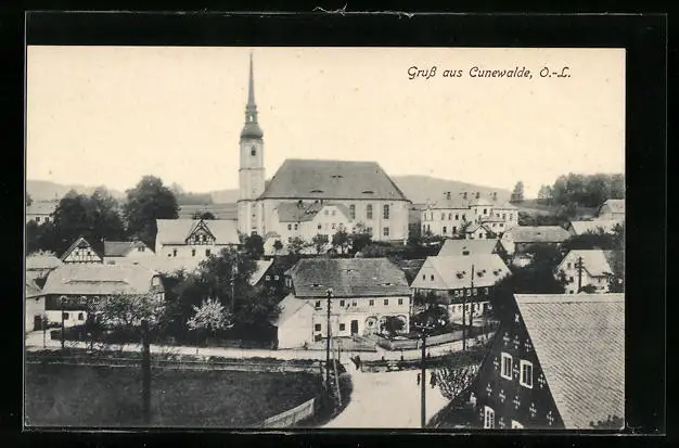 AK Cunewalde, Teilansicht mit Kirche