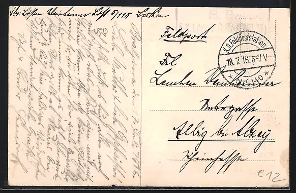 alte Ansichtskarte, gelaufen 1916, minimaler Einriss unten mittig, guter Zustand
