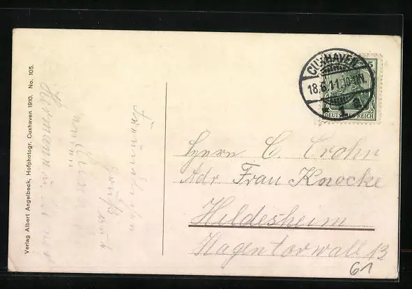 alte Ansichtskarte, gelaufen 1911, Abriebspur re. unten, guter Zustand
