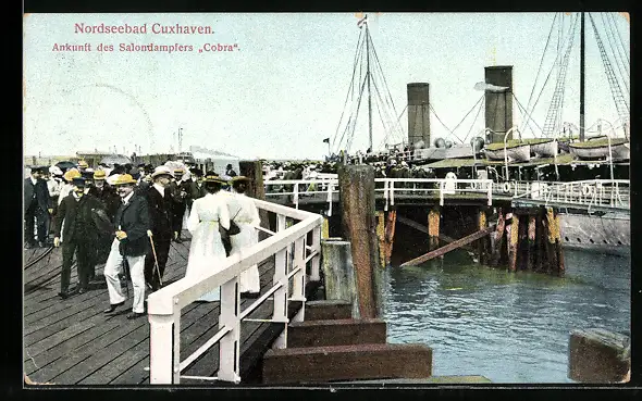 AK Cuxhaven, Ankunft des Salondampfers Cobra