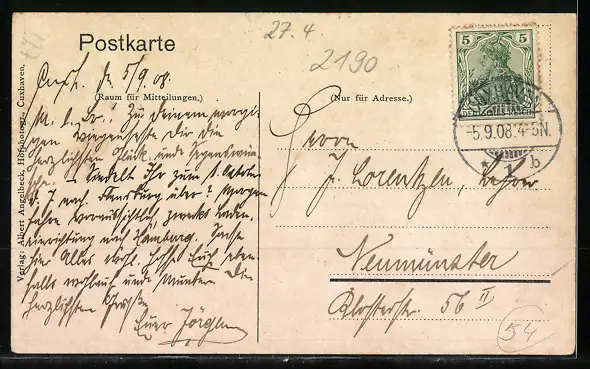 alte Ansichtskarte, gelaufen 1908, guter Zustand