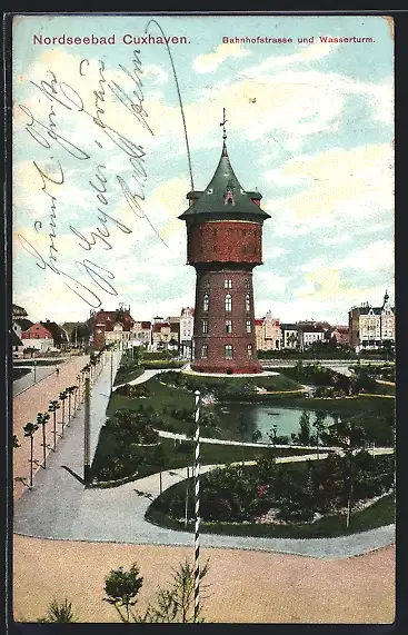 AK Cuxhaven, Bahnhofstrasse und Wasserturm