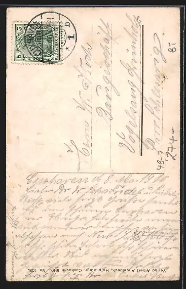 alte Ansichtskarte, gelaufen 1910, guter Zustand