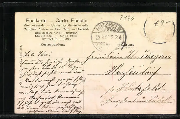 alte Ansichtskarte, gelaufen, Briefmarke entfernt, rückseitig Oberflächenschaden, guter Zustand