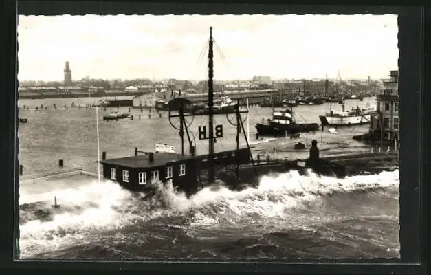 AK Cuxhaven, Hafenansicht bei Sturmflut