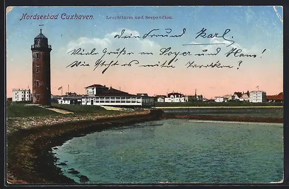 AK Cuxhaven, Leuchtturm und Seepavillon