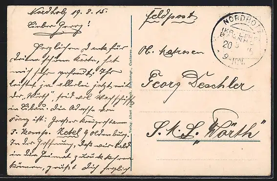 alte Ansichtskarte, gelaufen 1915, Eckknick re. oben, guter Zustand