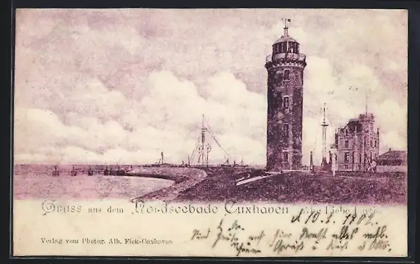 AK Cuxhaven /Nordsee, Uferpartie mit Leuchtturm