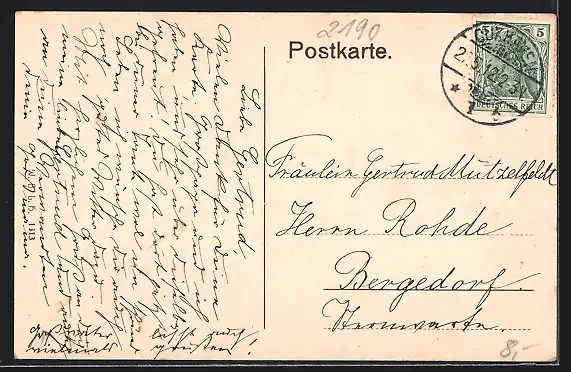alte Ansichtskarte, gelaufen 1912, Stempelspur, guter Zustand