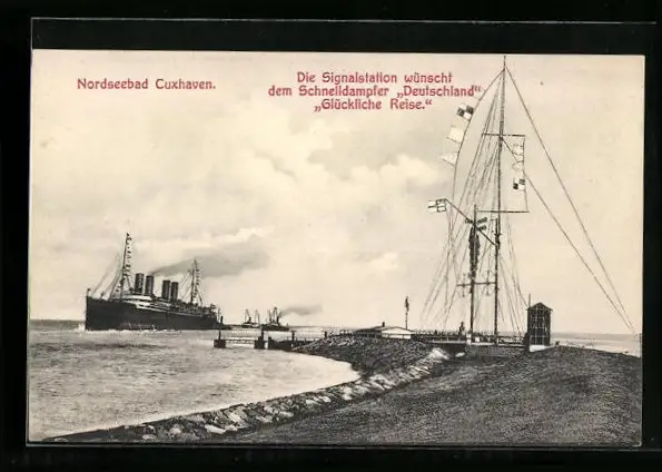 AK Cuxhaven, Passagierschiff Deutschland passiert die Signalstation