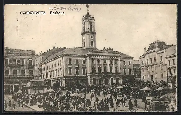 AK Czernowitz, Rathaus mit Markt