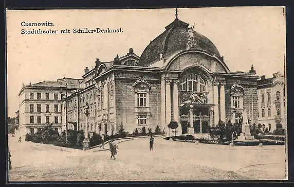 AK Czernowitz, Stadttheater mit Schiller-Denkmal