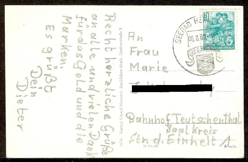 AK in einer Schutzfolie - Kleinformat, postal. befördert, eventuelle Farbabweichungen, bedingt durch Blitzlicht, Lichteinfall und unterschiedliche Bildschirmkalibrierung - Original Scan,
