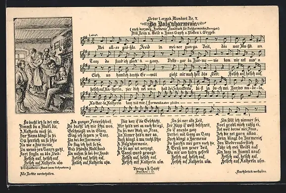 AK Da Balg`nharmonie, Lied in erzgebirgischer Mundart mit Noten