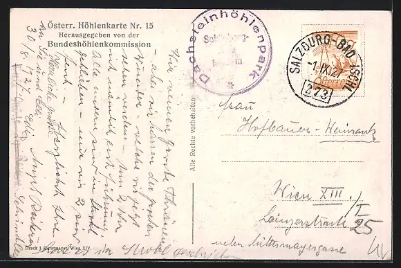 gelaufen 1927, Eckknick rechts oben, guter Zustand