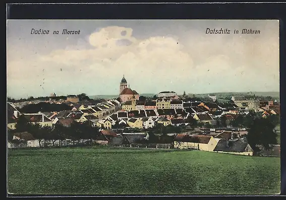 AK Dacice / Datschitz, Totalansicht vom Feld aus