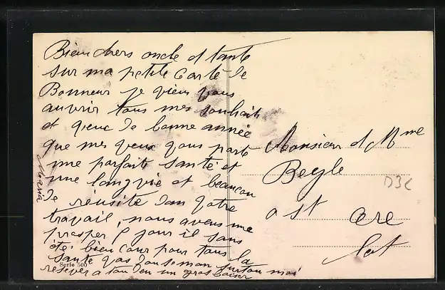 Personenbezogene Daten auf der Rückseite der Karte wurden durch blauen Textmarker unkenntlich gemacht. Die blauen Stellen sind auf die Vorderseite durchgeweicht und wirken sich negativ auf das Postkartenfoto aus