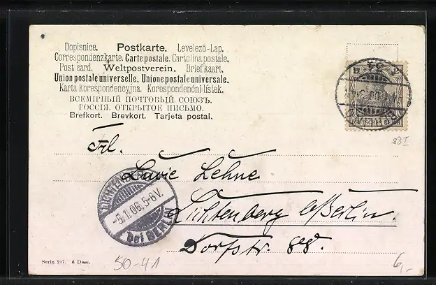 alte Ansichtskarte, gelaufen 1906, guter Zustand