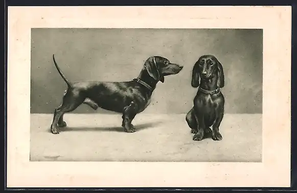 AK Dackel nähert sich läufiger Dackelhündin an