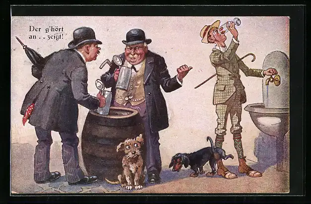 AK Dackel uriniert einem Wassertrinker ans Bein, Biertrinker lästern