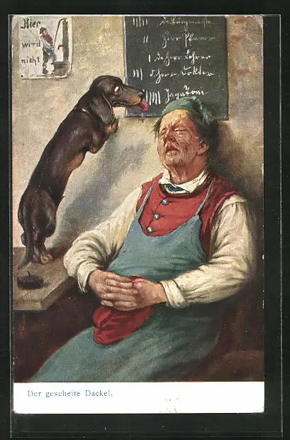 AK Dackel weckt das Herrchen mit seiner feuchten Zunge