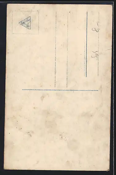 Personenbezogene Daten auf der Rückseite der Karte wurden durch blauen Textmarker unkenntlich gemacht. Die blauen Stellen sind auf die Vorderseite durchgeweicht und wirken sich negativ auf das Postkartenfoto aus