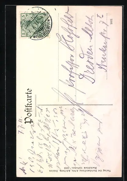 alte Ansichtskarte, gelaufen 1911, Stempelspur, guter Zustand