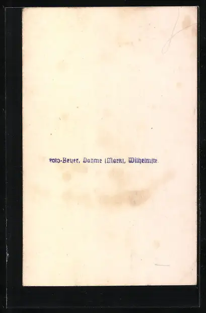 Personenbezogene Daten auf der Rückseite der Karte wurden durch blauen Textmarker unkenntlich gemacht. Die blauen Stellen sind auf die Vorderseite durchgeweicht und wirken sich negativ auf das Postkartenfoto aus