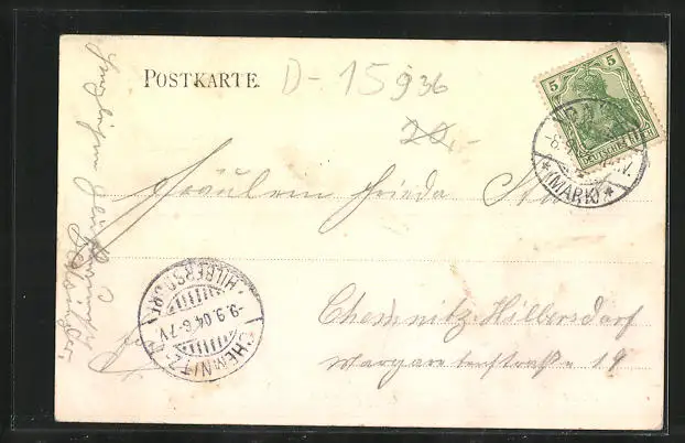 alte Ansichtskarte, gelaufen 1904, guter Zustand