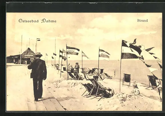 AK Dahme i. Holst., Flaggen wehen am Strand