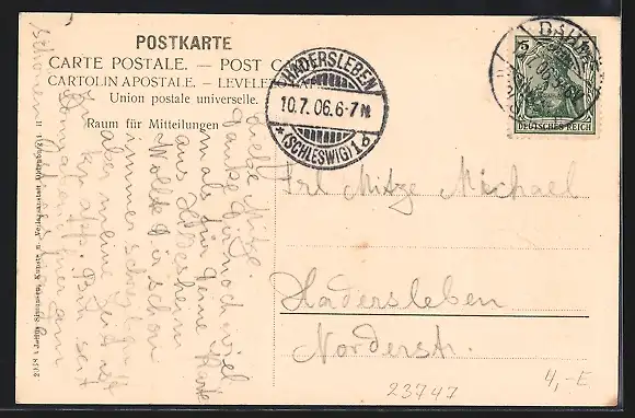 alte Ansichtskarte, gelaufen 1906, guter Zustand