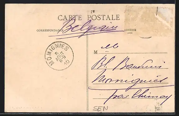gelaufen 1910, Briefmarke entfernt, guter Zustand