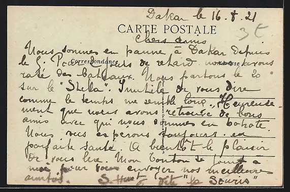 Personenbezogene Daten auf der Rückseite der Karte wurden durch blauen Textmarker unkenntlich gemacht. Die blauen Stellen sind auf die Vorderseite durchgeweicht und wirken sich negativ auf das Postkartenfoto aus