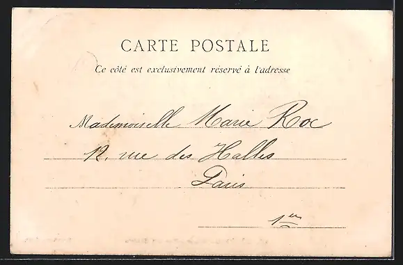 Personenbezogene Daten auf der Rückseite der Karte wurden durch blauen Textmarker unkenntlich gemacht. Die blauen Stellen sind auf die Vorderseite durchgeweicht und wirken sich negativ auf das Postkartenfoto aus