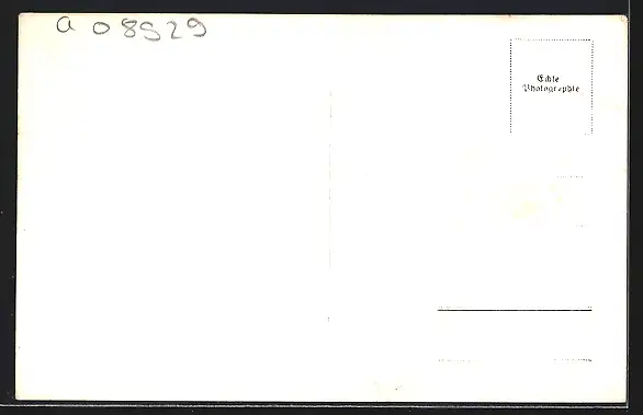 Personenbezogene Daten auf der Rückseite der Karte wurden durch blauen Textmarker unkenntlich gemacht. Die blauen Stellen sind auf die Vorderseite durchgeweicht und wirken sich negativ auf das Postkartenfoto aus