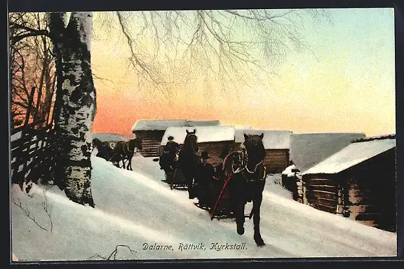 AK Dalarne, Rättvik, Kyrkstall, Pferdeschlitten