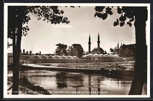AK Damas, Mosquée Tekieh et Solimanieh, vue de la Riviére Barada
