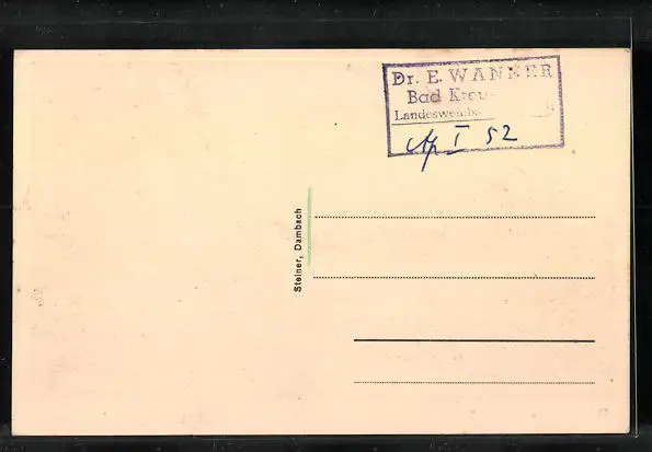 Personenbezogene Daten auf der Rückseite der Karte wurden durch blauen Textmarker unkenntlich gemacht. Die blauen Stellen sind auf die Vorderseite durchgeweicht und wirken sich negativ auf das Postkartenfoto aus
