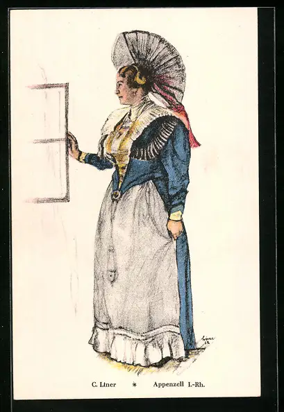 AK Dame in Appenzeller Tracht mit kammartiger Haube