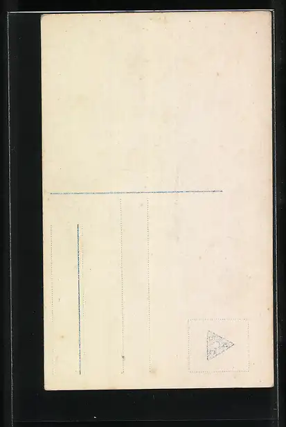Personenbezogene Daten auf der Rückseite der Karte wurden durch blauen Textmarker unkenntlich gemacht. Die blauen Stellen sind auf die Vorderseite durchgeweicht und wirken sich negativ auf das Postkartenfoto aus